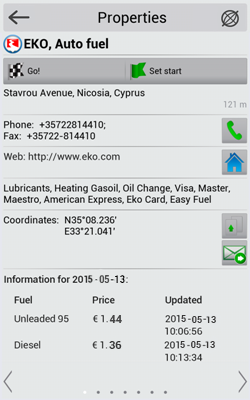 To see information about needed POI, you can find it in the "Nearest" menu, or find point on the map and open the detailed info about this point. If the Internet connection is on, the needed data will be downloaded automatically.