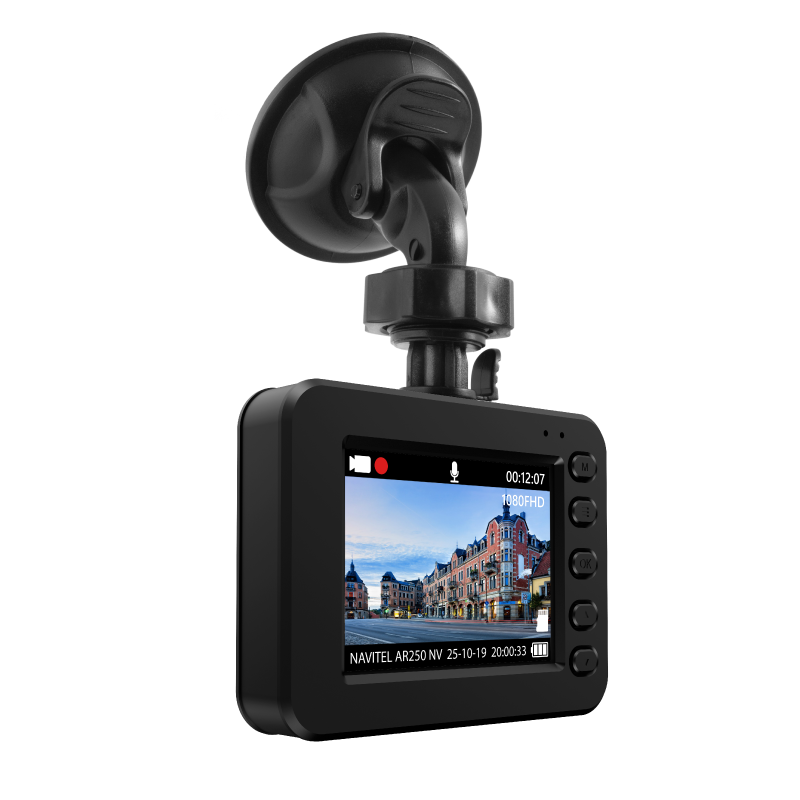 NAVITEL AR250 NV bude kdykoli Vaším spolehlivým pomocníkem. Kamera nahrává video ve vysokém rozlišení (1920x1080) a má panoramatický úhel 140°, což umožňuje záznam široké části vozovky před autem, včetně vedlejších pruhů a silnic.
