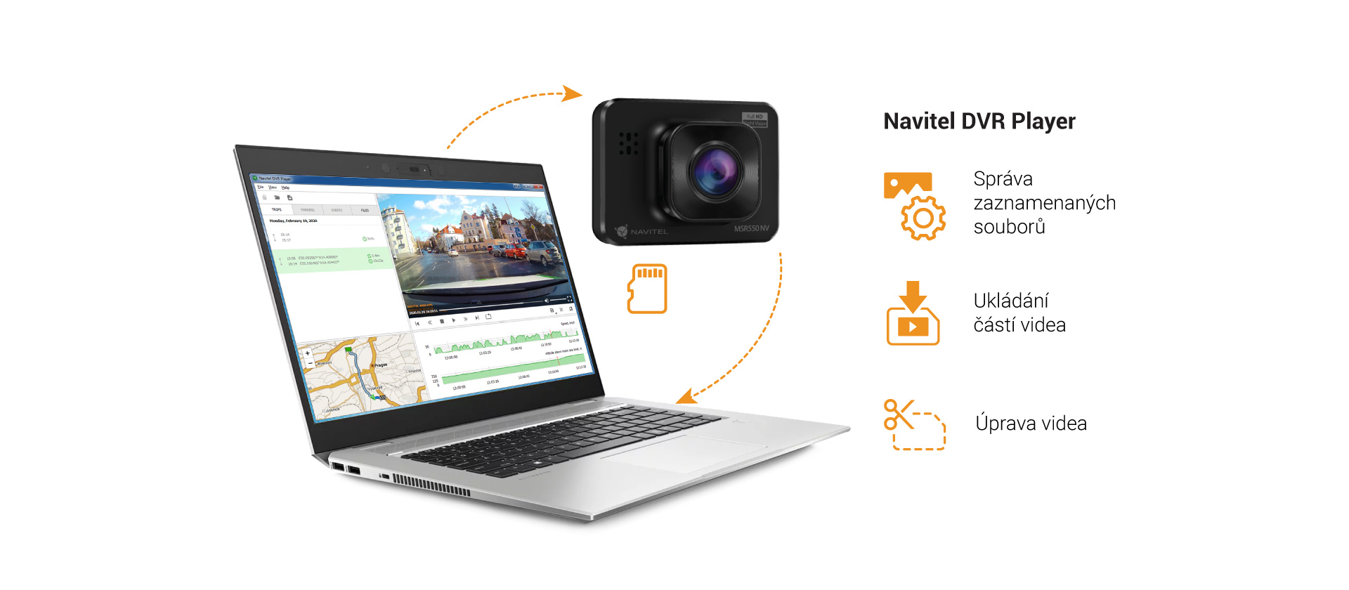 Kamera NAVITEL MSR550 NV má zabudovaný snímač nárazu (G-senzor), který chrání videa před přepsáním, pokud zaznamená kolizi nebo ostré brždění.