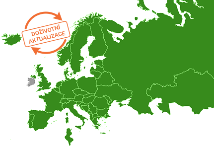 Součástí zařízení je licence na mapy 47 zemí, z nichž některé jsou již v zařízení nahrány. Pomocí programu Navitel Navigator Update Center můžete aktualizovat seznam map, odstranit nepoužívané, nainstalovat potřebné a také aktualizovat stávající. Pro ukládání aktualizací map a záznamů tras může být nutné nainstalovat SD kartu (není součástí balení).