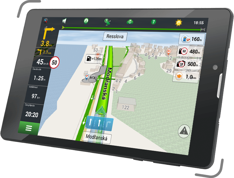 Tablet NAVITEL T505 PRO má předinstalované mapy 47 zemí světa. Mapy obsahují aktuální informace o dopravních křižovatkách, městské infrastruktuře a radarech.