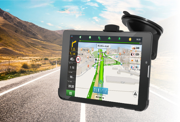 Tablet lze rychle a snadno připevnit do automobilu pomocí držáku na čelní sklo, který je součástí balení.