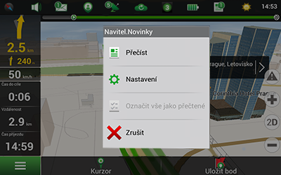 Pro otevření stránky této služby zvolte Menu > Můj Navitel > Novinky.