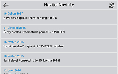 Prostřednictvím služby Navitel.Novinky budete dostávat důležité novinky o aktualizacích a program a upozornění na speciální nabídky a slevy.
