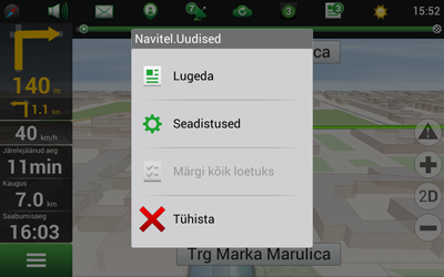 Teenuse lehekülje valimiseks valige Menüü > Minu Navitel > Uudised.
