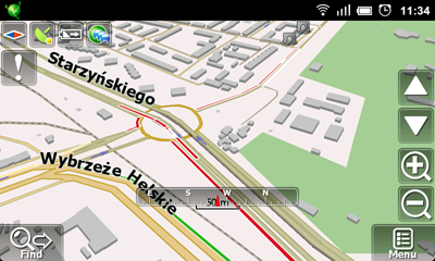 Sometimes there is a need to view route from different angles. Navigation map Navitel now can be rotated also in horizontal plane! Just move your finger at the lower part of display between buttons “Find” and “Menu”, at the scale and map will be rotated!