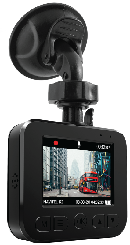 NAVITEL R2 will be your reliable assistant on any road at any time. The Dash Cam records Full HD (1920x1080) video at 30 frames per second, and a panoramic 140° angle allows recording of a wide portion of the road ahead of a car, including neighboring lanes and the roadside.