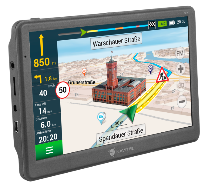 NAVITEL E700 TMC is a car navigator with Traffic Messaging Channel technology (TMC). With this function, a car owner recieves real-time information about traffic jams and adverse conditions, allowing the calculation of an alternative route to make a detour around problem areas.