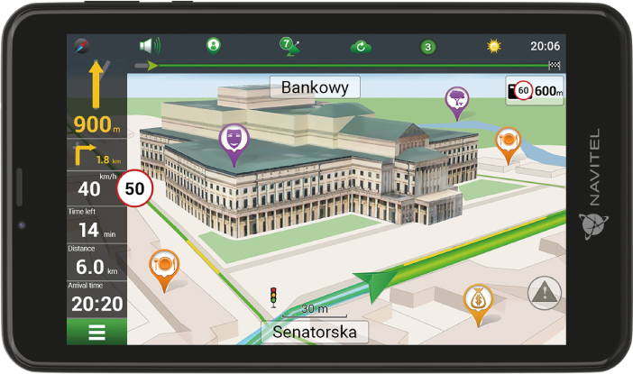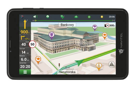 Navitel Navigator software preinstalled on NAVITEL T757 LTE offers advanced navigation features such as turn-by-turn voice directions, SPEEDCAM alerts, several search types, and demo routes. During a long trip the user can turn off connection with the Internet and use offline navigation to save mobile traffic on the way.