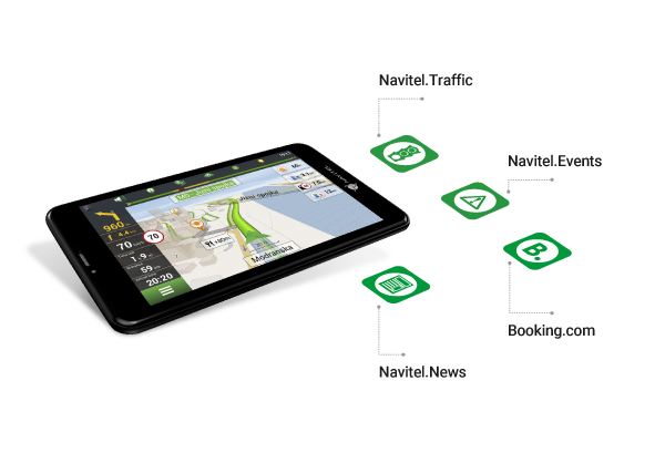 Connection to the Internet gives access to free NAVITEL® online services - Navitel.Traffic, Navitel.Events, Navitel.News and a service from Booking.com is among them.