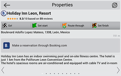 The Properties window opens. - In the Properties window, see information about the selected hotel, and then tap the "Make reservation through Booking.com" button.
