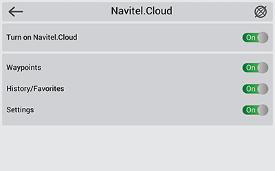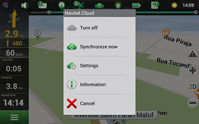 Navitel.Cloud service allows you to save your settings, waypoints, and search history in the cloud data storage. The data saved in the cloud can be restored afterwards in case you have reinstalled the program. If you use Navitel Navigator on several devices, waypoints and history data can be synchronized between all of them, which might come handy, saving you time otherwise spent transferring the necessary files.