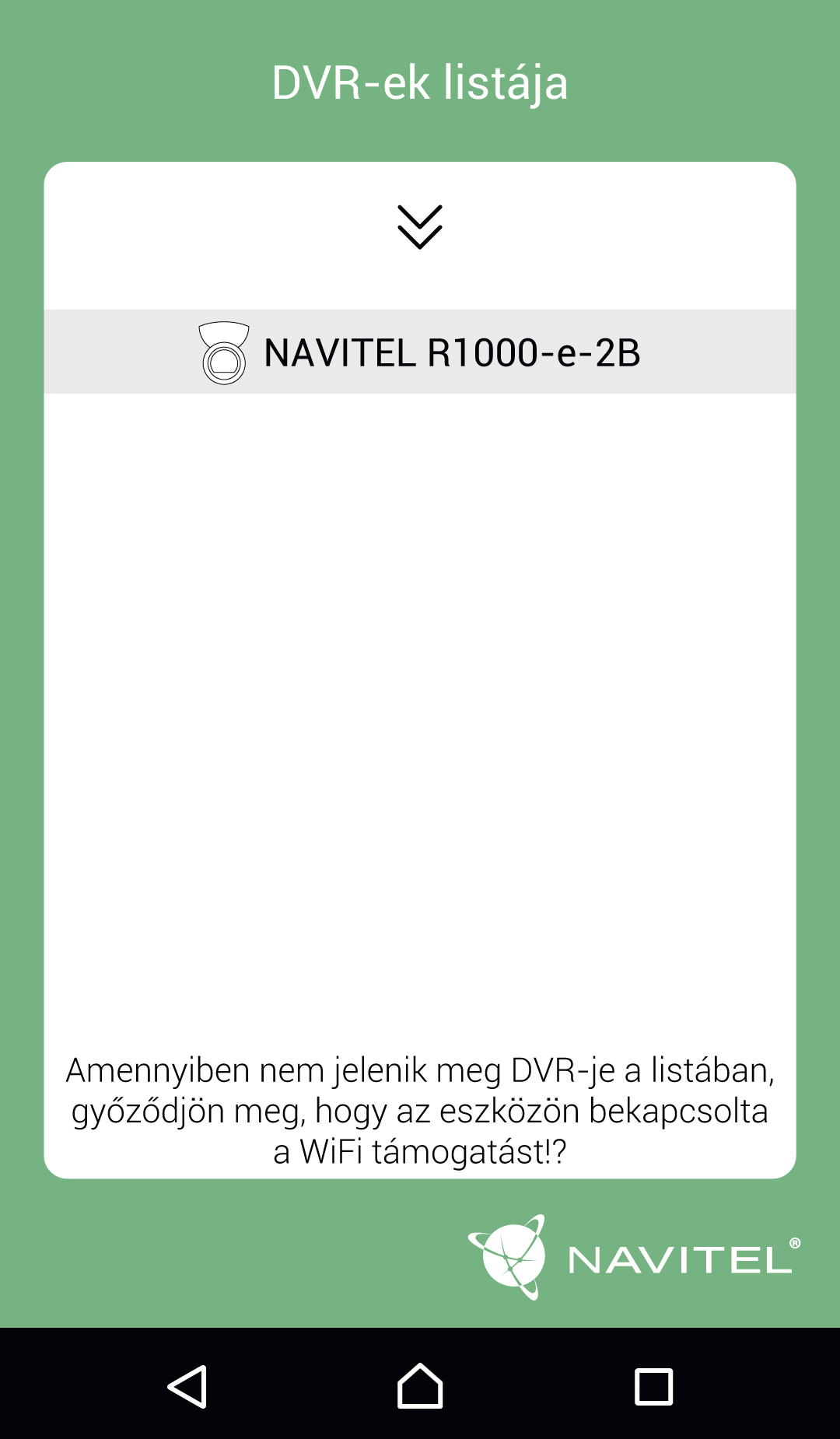 Az Navitel R1000 applikáció nélkülözhetetlen kiegészítő minden NAVITEL R1000 DVR tulajdonos számára. Az alkalmazás lehetővé teszi a DVR beállítását és vezérlését okostelefonról vagy táblagépről.