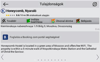 Megnyílik a Tulajdonságok ablak. - A Tulajdonságok ablakban, nézd meg a kiválasztott szállodához tartozó információkat, majd érintsd meg a "Foglalj a Booking.com keresztül" gombot.