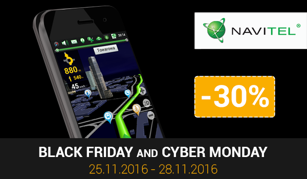 Tik 4 dienas – lapkričio 25–28 d. – NAVITEL® programų kaina bus mažesnė Google Play, App Store ir Microsoft Store parduotuvėse bei oficialioje įmonės interneto svetainėje Pasinaudokite galimybe įsigyti "Navitel Navigator" žemėlapių paketą ir jo neribotus atnaujinimus su 30% nuolaida!