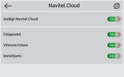 Pakalpojums Navitel.Mākoņserviss ļauj saglabāt iestatījumus, maršruta punktus un meklēšanas vēsturi mākoņservisa datu glabātuvē. Datu saglabāšana mākoņservisā ļauj tos atjaunot gadījumā, ja programma tiek pārinstalēta. Ja jūs izmantojat Navitel Navigator vairākās ierīcēs, mākoņserviss ļauj sinhronizēt maršruta punktus un vēsturi starp visām ierīcēm. Tas varētu būt noderīgi, ietaupot laiku, kas citādi būtu jāpatērē nepieciešamo failu pārsūtīšanai.
