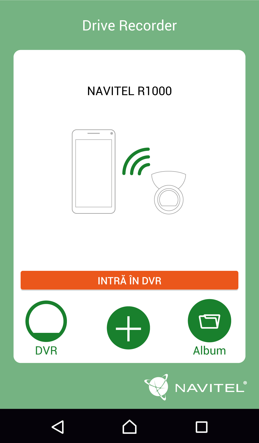 Aplicația Navitel R1000 i stabilește conexiunea cu DVR-ul printr-o rețea WiFi. După stabilirea cu succes a conexiunii, utilizatorii pot vizualiza imaginile și înregistrările video pe ecranul telefonului/tabletei în timp real. Acestea pot fi salvate în memoria dispozitivului instantaneu, apoi împărtășite prin aplicații și rețele sociale cunoscute.