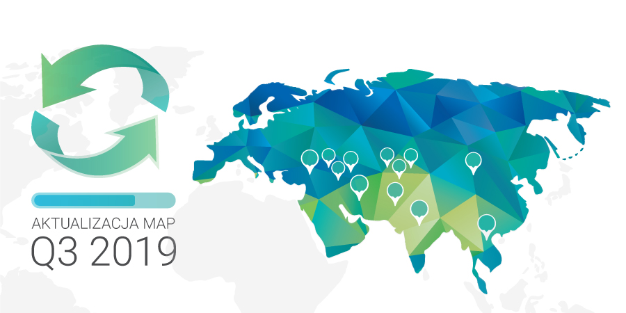 Aktualizacja map Bliskiego Wschodu, Południowego Kaukazu i Azji Q3 2019 obejmuje 12 państw — Armenię, Azerbejdżan, Gruzję, Indie, Iran, Kirgistan, Mongolię, Pakistan, Tadżykistan, Turcję, Uzbekistan, Wietnam.