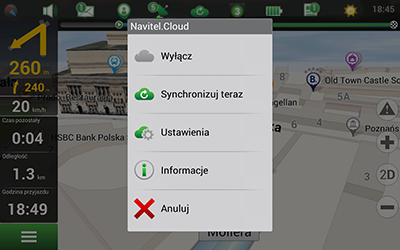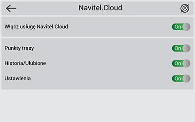 Funkcja Navitel.Cloud pozwala zapisać ustawienia, waypoints, historie wyszkuiwania w chmurze. Dane zapisane w chmurze mogą zostać przywrócone po ponownym zainstalowaniu aplikacji. Jeżeli używasz Navitel Navigator na kilku urządzeniach, waypoints oraz historia mogą zostać synchronizowane między nimi, jest to bardzo pożyteczna funkcja, która pozwala zaoszczędzić czas.