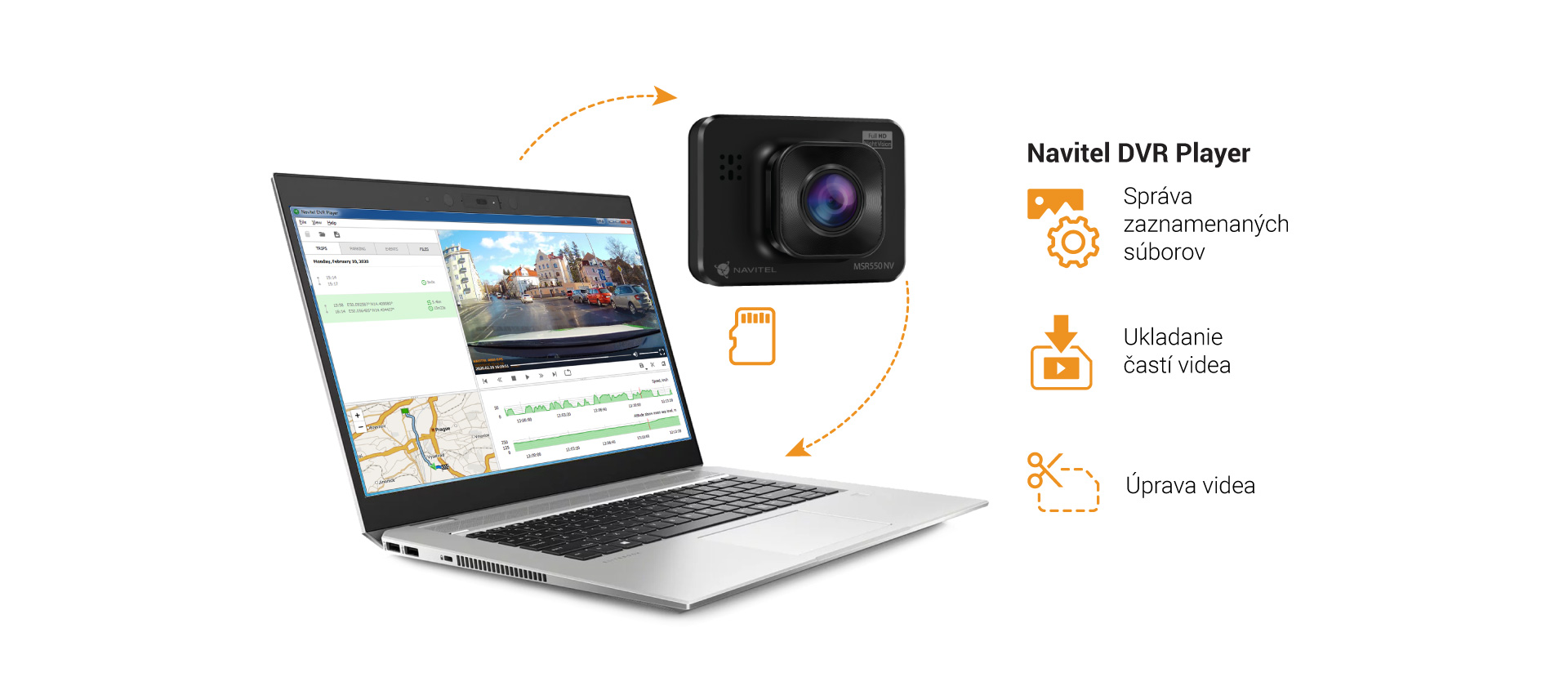 NAVITEL MSR550 NV Vám bude spoľahlivým pomocníkom na akejkoľvek ceste. Kamera zaznamenáva video v rozlíšení FullHD (1920x1080) s rýchlosťou 30 snímok za sekundu a panoramatický uhol 140° umožňuje záznam širokej časti cesty pred automobilom, vrátane vedľajších pruhov a ciest.