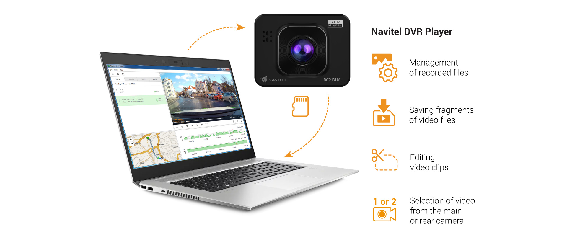 NAVITEL RC2 DUAL je nová moderná kompaktná autokamera so zadnou kamerou pre sledovanie situácie za autom.