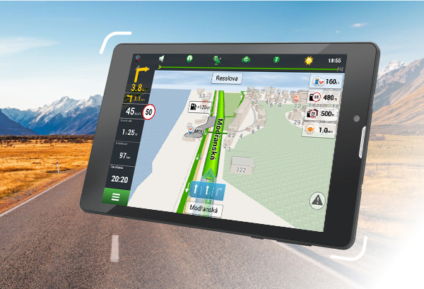 Tablet NAVITEL T505 PRO má predinštalované mapy 47 krajín sveta. Mapy obsahujú aktuálné informácie o dopravných križovatkách a mestskej infraštruktúre a radaroch.