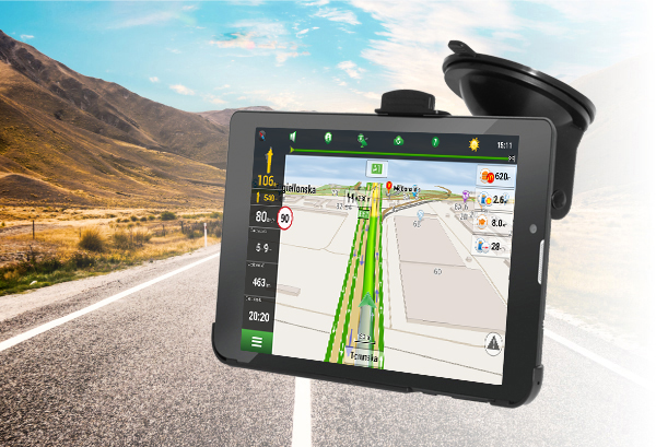 Tablet je možné rýchlo a jednoducho pripevniť do automobilu pomocou držiaka na čelnom skle, ktoré je súčasťou balenia.