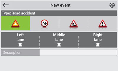 Sử dụng loại sự kiện này để đánh dấu tai nạn đường bộ. Bạn có thể sử dụng cột thông tin bổ sung và phím nóng để hiển thị làn đường giao thông, nơi xảy ra tai nạn đường bộ.